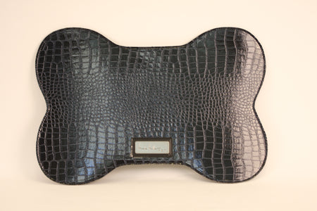Dark Blue Croc Faux Leather Bowl Mat