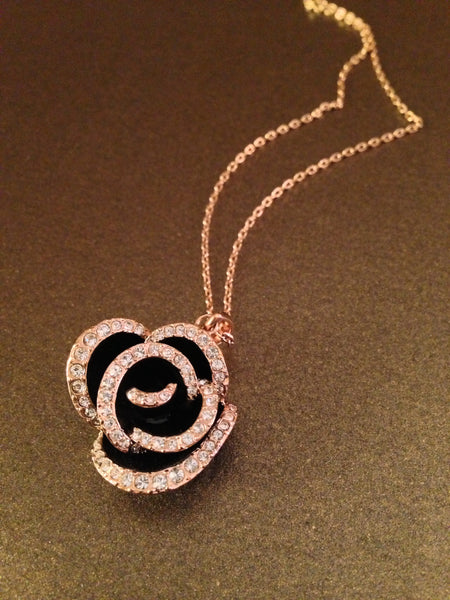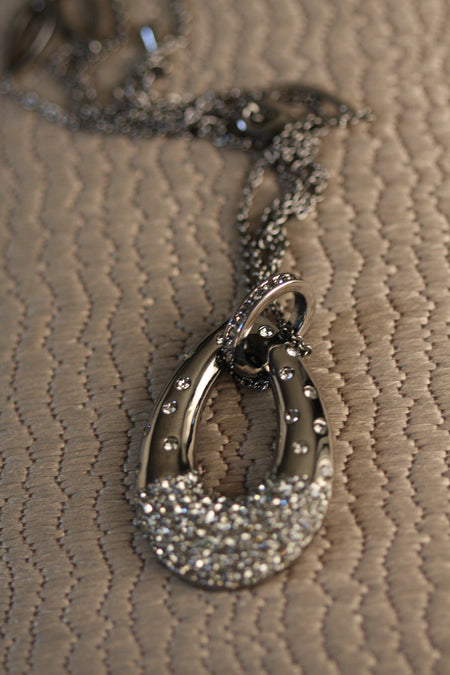 Crystal Encrusted Teardrop Pendant Necklace (Gun Metal)