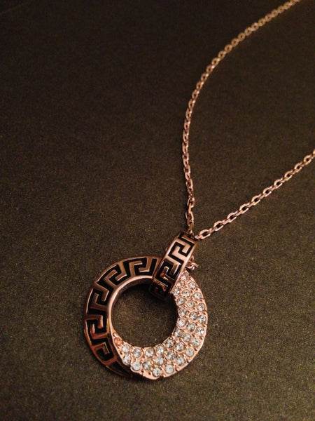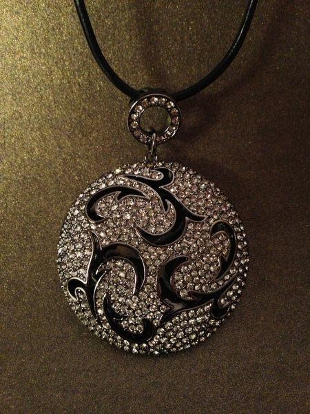 Crystal Encrusted Medallion Pendant Necklace (Gun Metal)