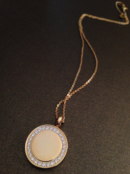 Crystal Lined Medallion Pendant Necklace (Gold)