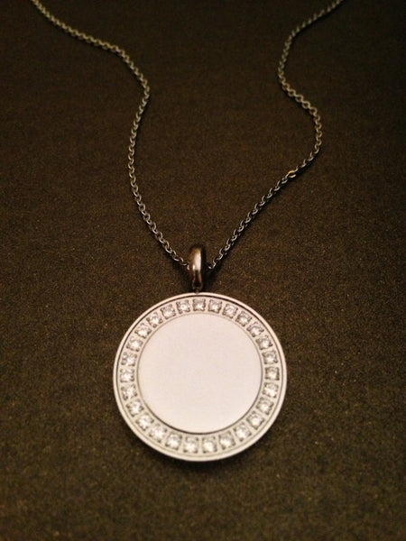 Crystal Lined Medallion Pendant Necklace (Silver)