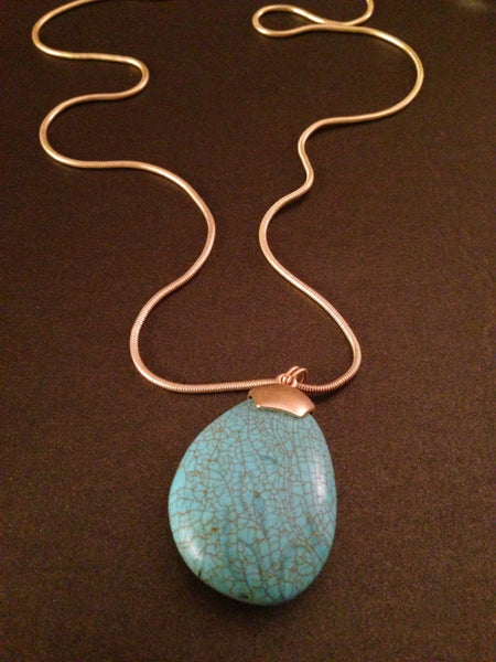 Semi Precious Stone Tourquois Teardrop Pendant Necklace