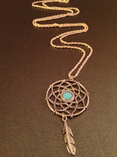 Dream Catcher Pendant Necklace (Turquoise)