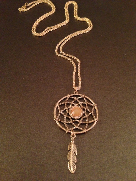 Dream Catcher Pendant Necklace (Peach Coral)