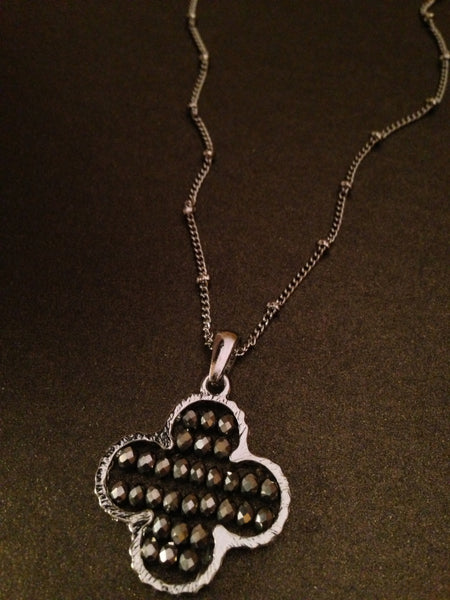 Seed Bead Clover Pendant Necklace (Silver)
