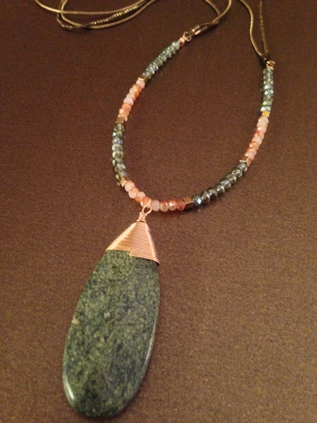 Crystal Feather Pendant Necklace Set (Patina Turquoise)