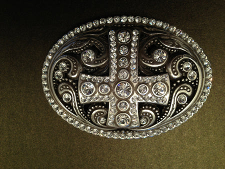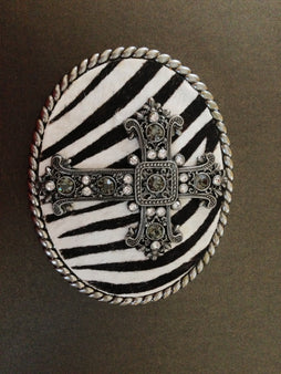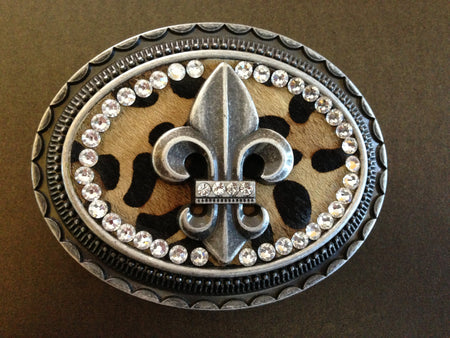 Oval Rhinestone Fleur De Lis with Leather inlay buckle in Leopard