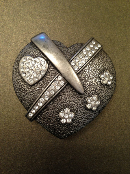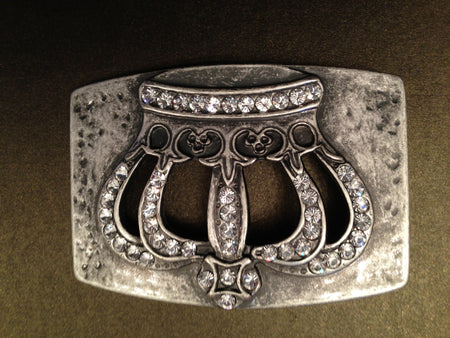 Rectangular Antique Silver Rhinestone Crown Hammered Belt Buckle