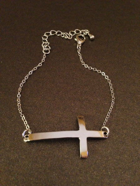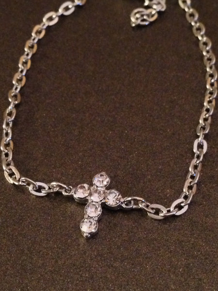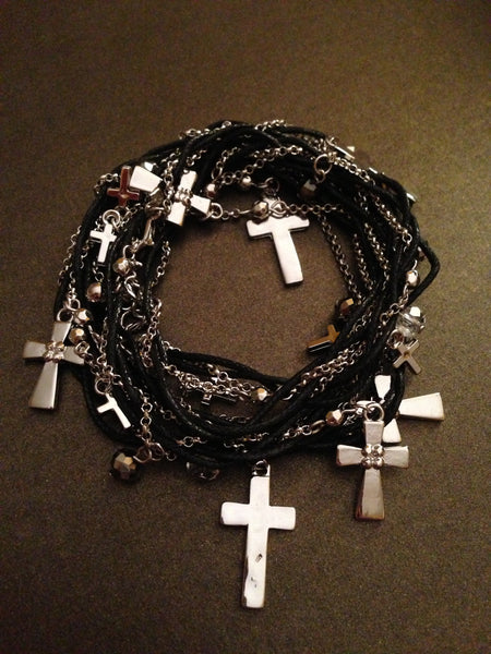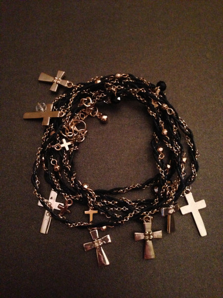 Metal Cross and Chain with Thread Wrap Bracelet (Silver and Black)