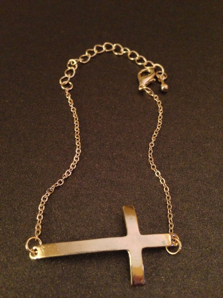 Metal Cross and Chain with Thread Wrap Bracelet (Gold and Black)
