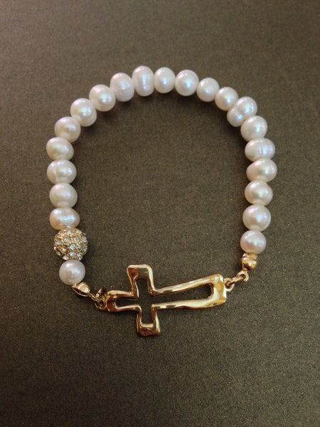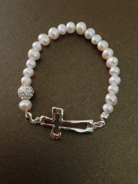 Crystal Ball With Cross and Fresh Water Pearl Bracelet