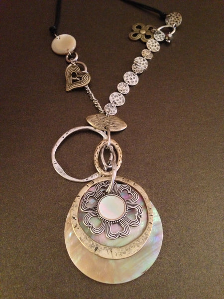 Antique Charms Long Necklace (Silver Ox)