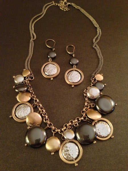 Metal Hammered Round Discs Necklace Set